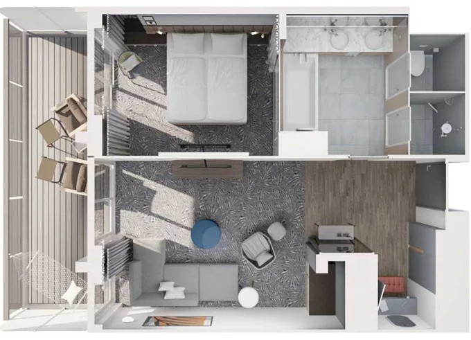 | JKBO - Junior Suite s balkonem B 26 m² + balkon 7 m² se židlemi a podnožkami. 8-12. paluba. Max 4 osoby. Výhody Junior Suite. | 111 166 Kč 111 166 Kč za osobu | ||